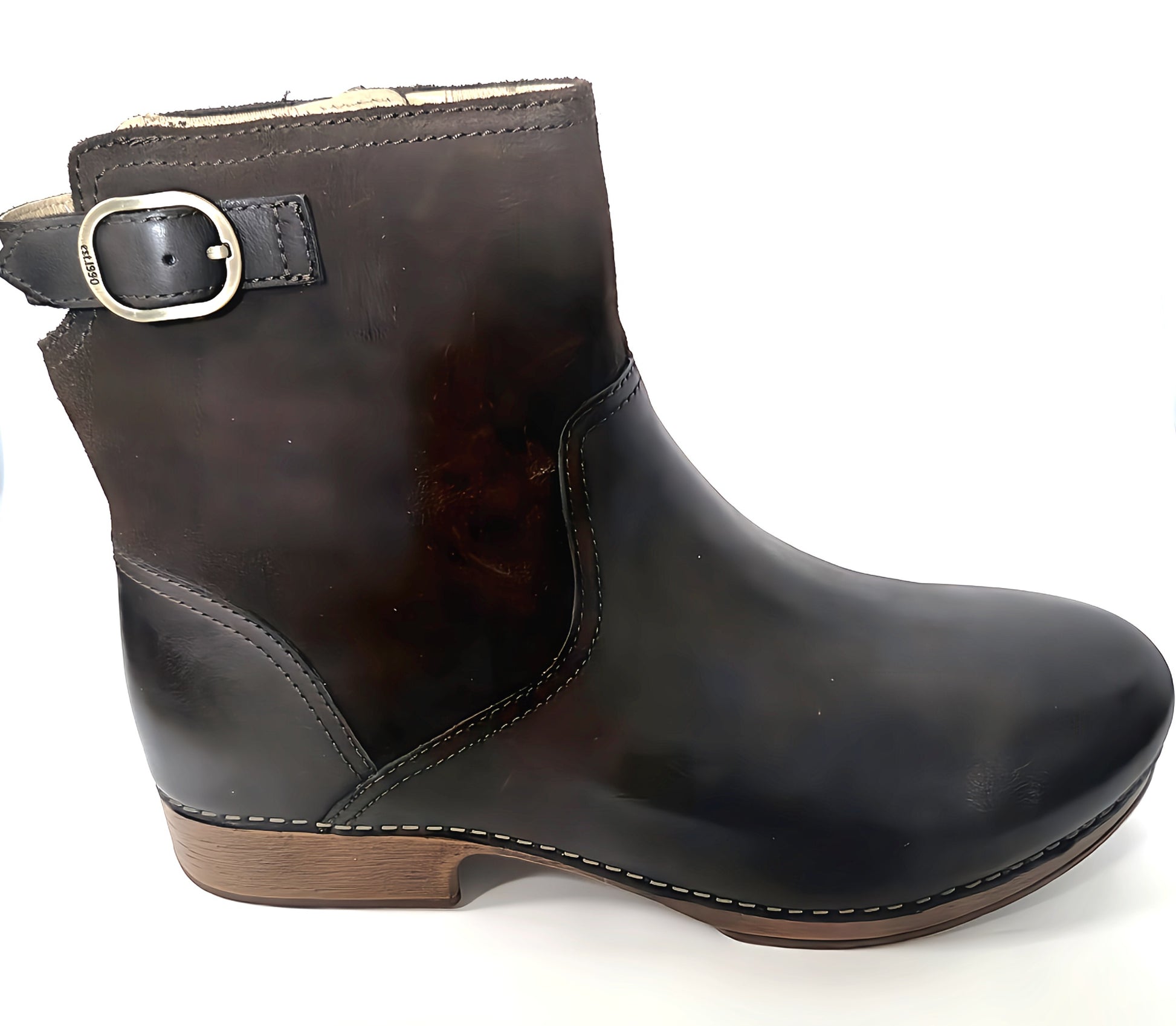 Step into everyday comfort and polished style with the Monique ankle boot. Crafted from premium burnished-calf leather with suede accents treated 3M Scotchgard for stain and water resistance. It features a sleek inside zipper for easy on-off, a cushioned PU footbed with arch support, and a light weight slip-resistant outsole for all day wear. A subtle 1-inch heel and Dansko's signature stability make it the perfect boot to dress up or down season after season.
